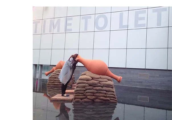 Previously, the work’s title bracketed the work by describing what they were meant to do. In the exhibition at Offsite, the title Time to Let Go is more open ended. Letting go can mean screaming or leaving anxieties behind. It can also refers to the letting go Golkar has had to do as an artist and allow the work to change and maybe even deteriorate over time during the duration of the installation. The title makes it easier for viewers to create their own meanings around he work too.